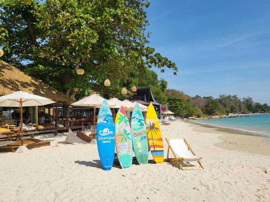Les habitacions del Silver Sand Hotel ofereixen un confort excepcional amb una gamma d'instal·lacions pensades per a satisfer totes les necessitats dels seus hostes. Cada habitació està equipada amb aire condicionat, garantint una temperatura agradable durant la vostra estada, fins i tot en els dies més càlids de Ko Samet. A més, podreu gaudir d'un moment de relaxació davant del televisor amb canals per satèl·lit i cable, o bé preparar-vos una tassa de cafè o te amb la màquina disponible a la vostra habitació.