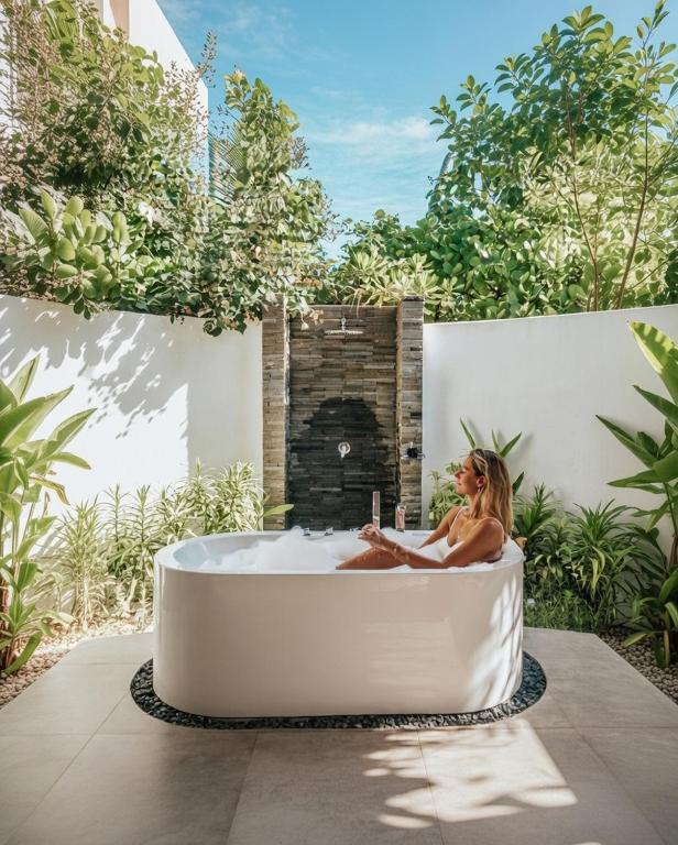 Indulge in the serenity of the Sunset Beach Villa, a 96 square meter sanctuary boasting a King Bed and stunning views of the golden sunset. Immerse yourself in the beauty of nature as you relax on your private terrace, surrounded by lush tropical greenery.