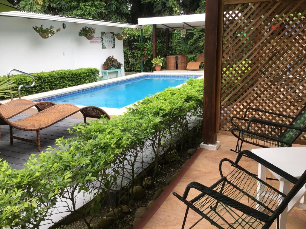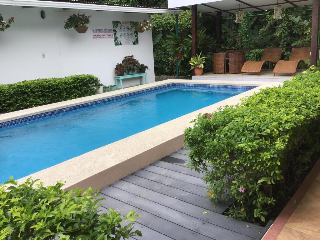 Immerse yourself in the refreshing swimming pool, surrounded by tropical foliage and comfortable loungers, perfect for soaking up the sun or enjoying a refreshing dip. The pool area also features a poolside bar, where you can sip on delicious cocktails while basking in the warm Costa Rican weather. If you're in the mood for some friendly competition, challenge your travel companions to a game of billiards or table tennis in the garden area. Additionally, the hotel offers bicycle rentals, allowing you to explore the picturesque surroundings at your own pace.