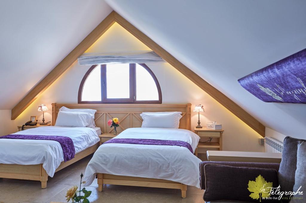 Indulge in the comfort and elegance of Le Telegraphe de Belle-Vue's Deluxe Double or Twin Rooms. With a generous size of 25 square meters, these rooms provide ample space for relaxation and rejuvenation. Choose between two comfortable Single Beds or one luxurious King Bed, ensuring a restful night's sleep. Whether you're traveling with a companion or seeking a peaceful retreat, these rooms offer the perfect sanctuary for your stay in Bhamdoun, Lebanon.