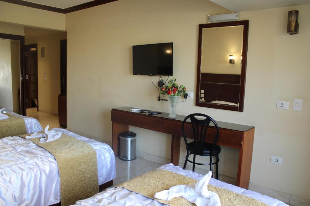 Experience the epitome of comfort and luxury at Pharaohs Hotel in Giza, Egypt. Our rooms are equipped with state-of-the-art amenities to ensure a memorable stay. Step into a world of relaxation as you enter your room, where you'll find refreshing air conditioning that allows you to adjust the temperature to your liking, ensuring a comfortable environment no matter the season.